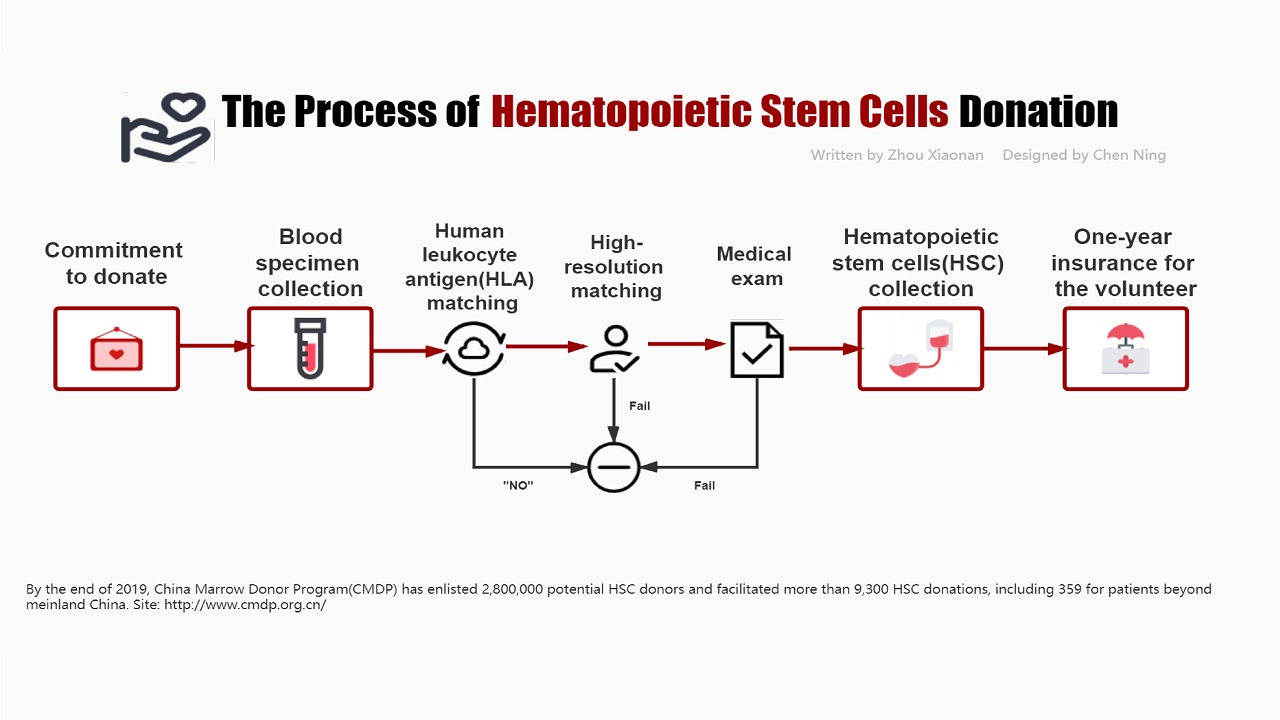 Kalau tidak ada hubungan darah, kemungkinan sukses amat sedikit, cuma satu dari sepuluh ribu. Program Penyumbang Sumsum China(CMDP) merupakan organisasi nirlaba yang termasuk afiliasi Palang Merah China(RCSC), dibentuk untuk mendukung penyumbangan sel induk hematopoietik, istimewa di Daratan Utama China. Sampai kini sudah tercatat sekitar 3 juta anggota di CMDP dan terdapat 10882 kasus penyumbangan sel induk hematopoietik.