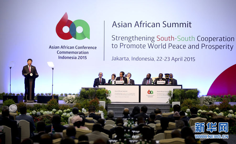 Konferensi Pemimpin Asia-Afrika pagi hari ini dibuka di Jakarta, ibukota Indonesia. Presiden Xi Jinping di depan konferensi itu menyampaikan pidato yang berjudul "Kembangkan Semangat Bandung, Dorong Kerja Sama dan Kemenangan Bersama". Ia mengatakan, berbagai negara hendaknya dengan sekuat tenaga mengembangkan Semangat Bandung, terus menambah isi zaman baru, mendorong dan membentuk hubungan internasional tipe baru yang berintikan kerja sama dan kemenangan bersama, mendorong tata tertib internasional dan sistem internasional berkembang menuju arah yang lebih adil dan rasional, meningkatkan kerja sama Asia Afrika, mendorong pembangunan masyarakat senasib manusia dan dengan lebih baik mensejahterakan rakyat Asa Afrika dan rakyat kawasan lainnya.
